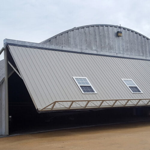 This custom 58’ x 16’ PowerLift retrofit brought new vitality to an old hangar! We expanded clear opening width by 8’ during the retrofit process, while keeping maximum height all the way across.