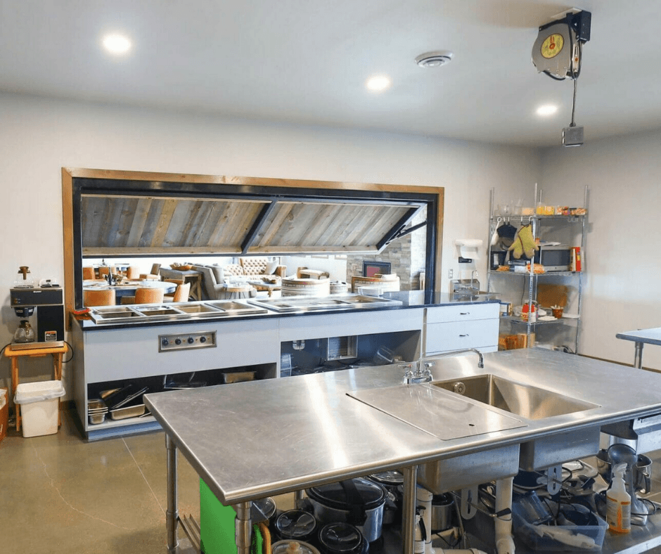 At this lodge, a PowerLift Door significantly reduces unnecessary steps while serving hunters during mealtime. The wide serving counter, paired with heated food pans on the kitchen side, allows staff to serve efficiently while maintaining clear visibility and smooth interaction between spaces.
