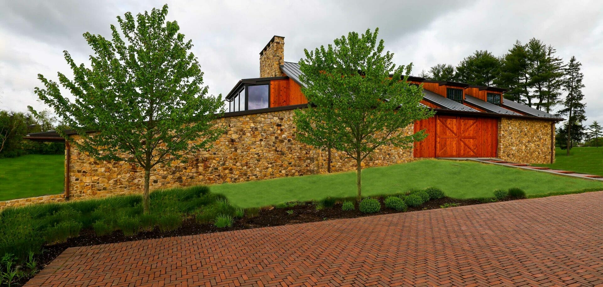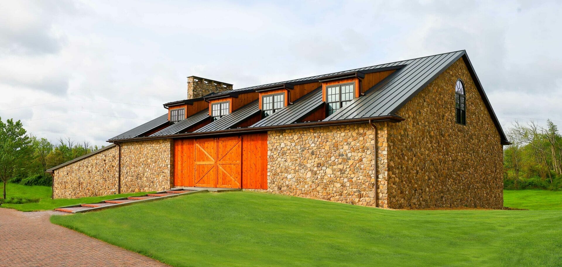 New three story building with two 28′ x 12′ Concealed Cylinder opening walls overlooking manicured grounds.